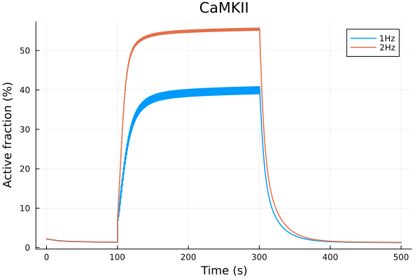 plot(sol, idxs=idxs, title="CaMKII", lab="1Hz")