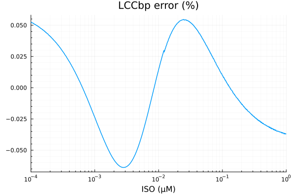 p2 = plot(xdata, (ypred .- ydata) ./ ydata .* 100; title="LCCbp error (%)", lab=false, xopts...)