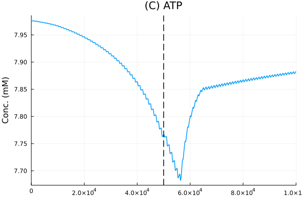 pl_atp = plot(sol, idxs=atp_i/1000, lab=false, title="(C) ATP", xlabel="", ylabel="Conc. (mM)")