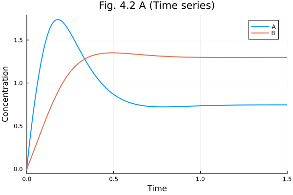 plot(sols[1], xlabel="Time", ylabel="Concentration", title="Fig. 4.2 A (Time series)")
